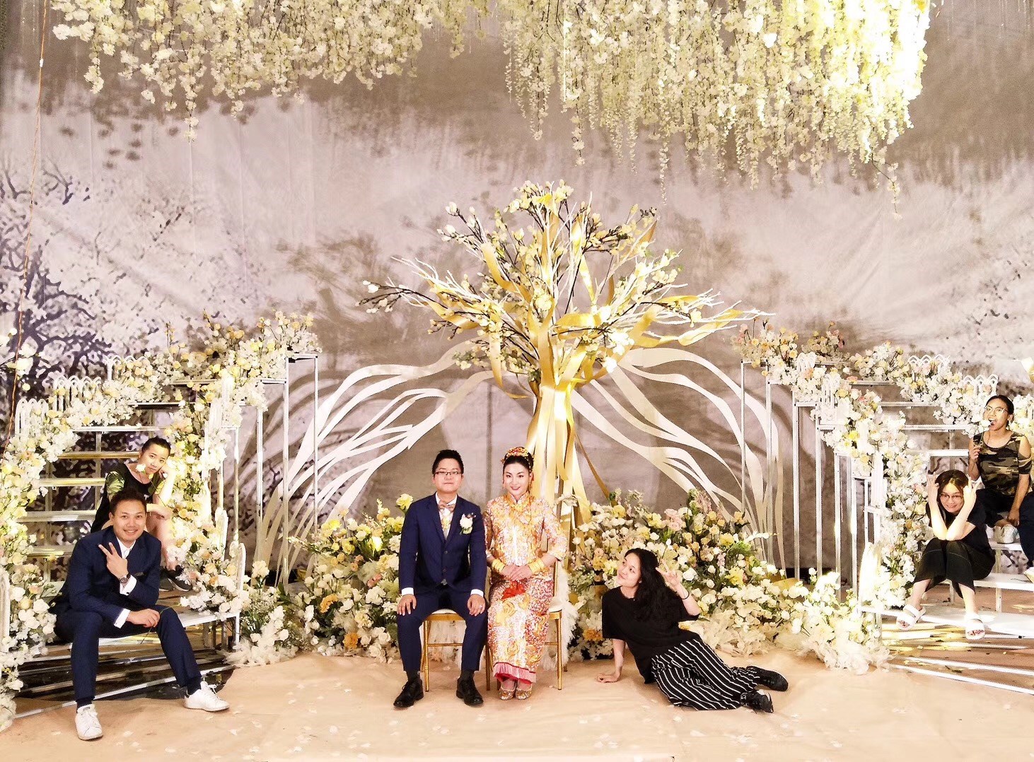 每位伴娘手里的花束各不相同,當(dāng)新娘從她們身邊走過時(shí),接過她們手中的小花束,組成一個(gè)大捧花,寓意伴娘們對(duì)新娘的支持與關(guān)愛。