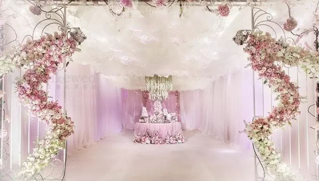 發(fā)給每位來賓一朵鮮花,然后讓客人把們插在一個(gè)拱形裝飾上,在儀式中新人這拱門下通過。